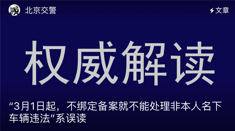 "不綁定備案就不能處理非本人名下車輛違法"系誤讀