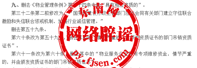 林先生告訴記者,國家的確是修改了《物業(yè)管理條例》,但是所涉及的4個條款的修改,全部是關(guān)于物業(yè)服務(wù)企業(yè)資質(zhì)的內(nèi)容,沒有一個與物業(yè)費有關(guān)。文章中所稱的“根據(jù)最新的物業(yè)管理條例”得出所謂的“8種情況”可以拒交物業(yè)費,顯然子虛烏有。