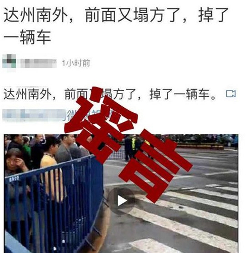 4.達州新增塌陷地方系謠言 網警:請勿信謠傳謠