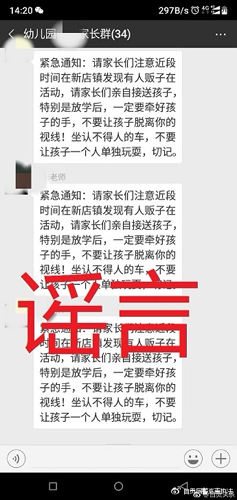 【謠言】自貢新店鎮某幼兒園家長爆料:昨天幼兒園某老師在發消息,稱新店鎮附近有人販子在活動。經警方核查,對于“新店鎮附近有人販子在活動”的消息