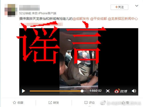 9.成都龍泉驚現人販搶小孩被堵截?網警求證:謠言!