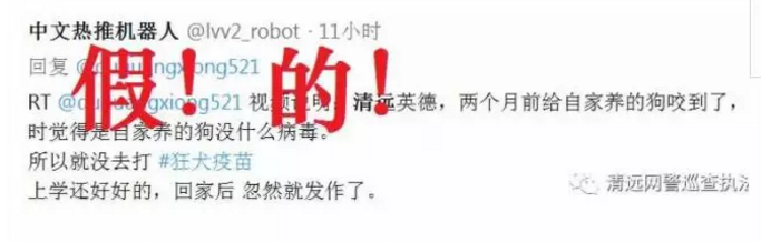 3月2日,廣東清遠警方就已對此辟謠:熱傳視頻聲稱英德地區一男孩被自家養的狗咬到了,當時沒有打疫苗導致發作,發現這一情況后,英德市網警支隊迅速向英德市相關防疫部門了解情況,得到回復是近期并未接到狂犬病事發報告,該信息和視頻屬造謠。