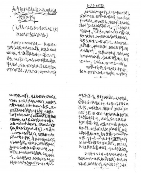 1、《為爭(zhēng)取千百萬群眾進(jìn)入抗日民族統(tǒng)一戰(zhàn)線而斗爭(zhēng)》(1937年5月8日)。這是毛澤東同志在延安召開的中國(guó)共產(chǎn)黨全國(guó)代表會(huì)議(當(dāng)時(shí)稱“蘇區(qū)黨代表大會(huì)”)上所作的結(jié)論。毛澤東同志這篇重要著作的手稿,全文共28頁,用的是16開紙,是用毛筆橫寫的。以下是這篇文章開頭的4頁(附照片)。