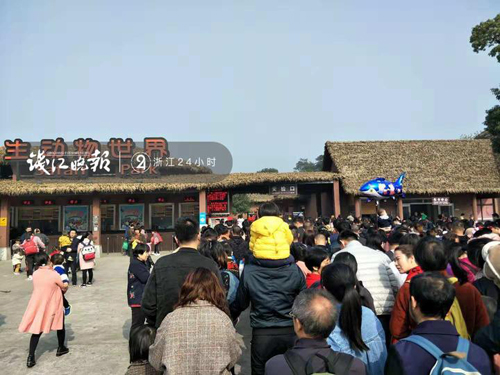 今天早上,顧先生一家三口起了個大早,帶著三歲孩子從杭州開了一個小時的車,趕在9點半就到了富陽的野生動物園。可現場的情況把顧先生嚇了一跳,“動物園門前的廣場上站滿了人,能有幾百人,正常9點半應該開園了呀。”