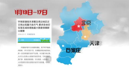 受不利氣象條件影響,1月13日至17日,京津冀及周邊地區出現一次區域性重污染天氣過程。環保部提前通知,要求各地切實落實各項應急減排措施,最大限度地保障公眾身體健康。