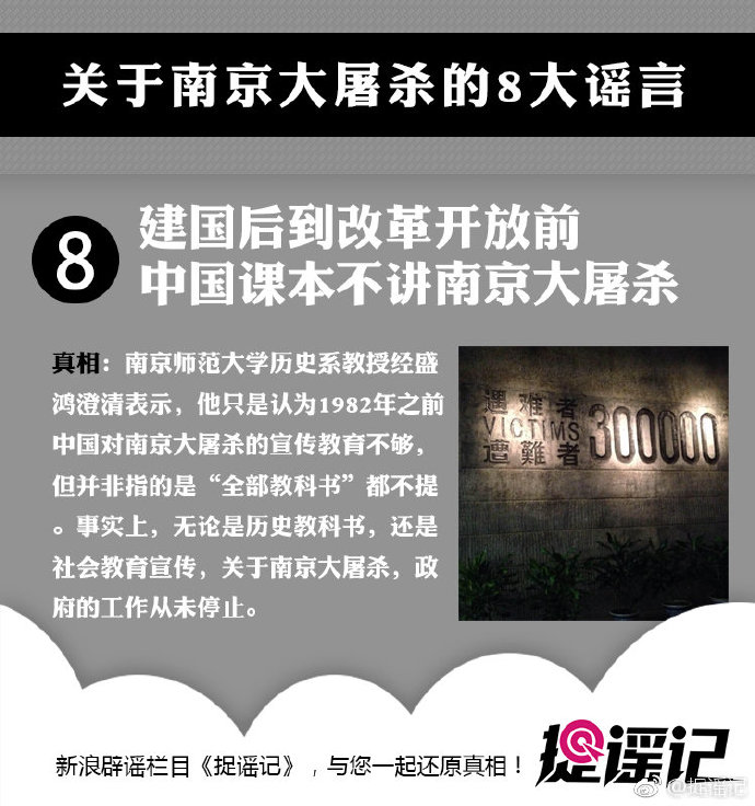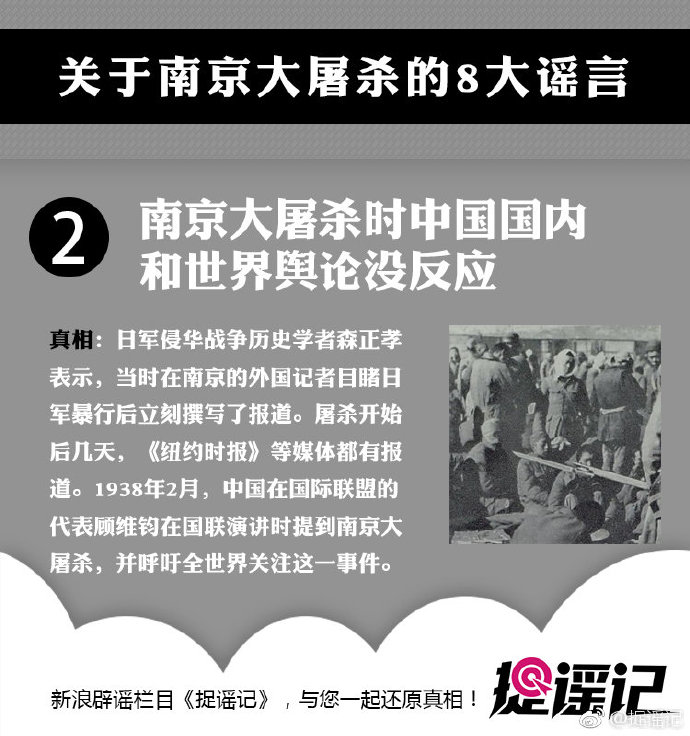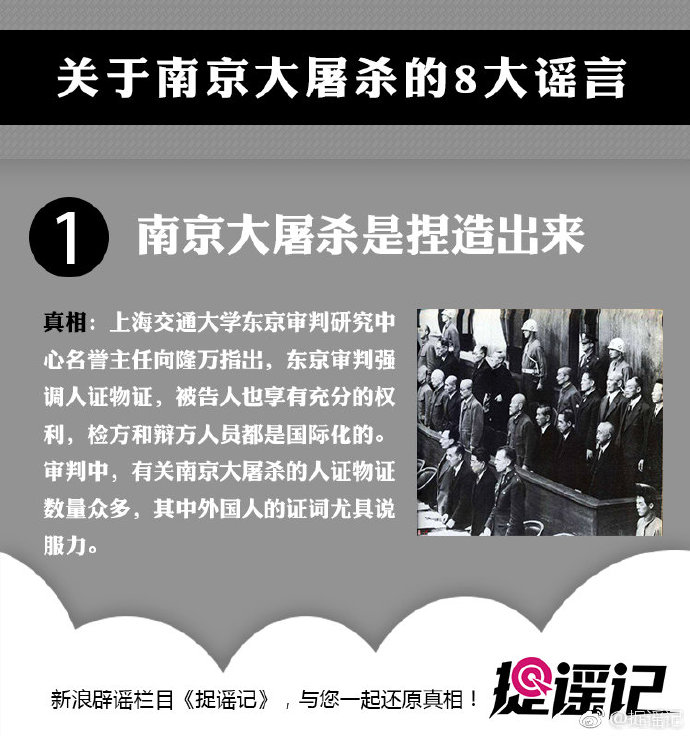 12月13日是南京大屠殺紀念日,鑒于日本右翼學者、政客等編造和散布謊言,極力篡改甚至否認大屠殺的事實,網絡輿論呼吁還原歷史真相的聲音也日漸強烈。因此,捉謠記欄目選擇在13日這天,推出“戳穿關于南京大屠殺的八大謠言”圖解策劃。為保證史實的準確,我們從新華社等權威媒體的報道,以及多名有代表性的南京大屠殺問題專家和歷史學者原始采訪資料、著作中搜集相關證據,以無可辯駁的事實,有力地粉碎了歷史謠言。該辟謠內容在@捉謠記、@頭條新聞等推送后,24小時內閱讀量達到80萬,點擊量也突破8萬,網友們紛紛留言“勿忘國恥,戳穿謠言”,獲得輿論的一致好評。