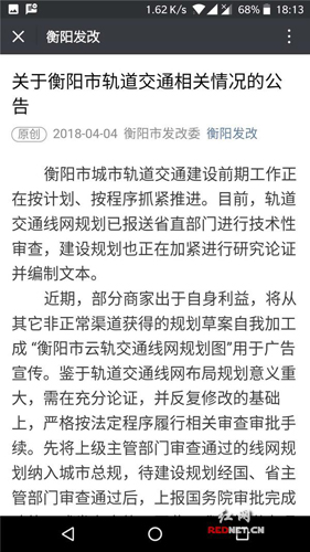 衡陽軌道交通線網圖已經出爐? 衡陽市發改委發文辟謠