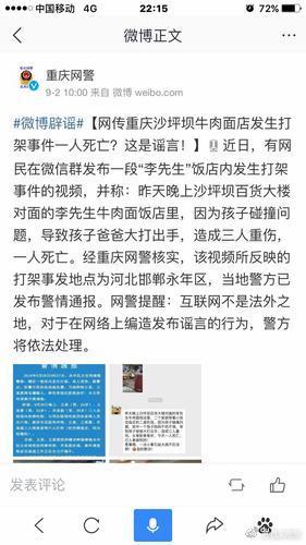 近日,網(wǎng)傳一段視頻,稱在包百附近一家飯店里,兩個家庭帶著小孩吃飯,因孩子發(fā)生碰撞大人大打出手,造成三人重傷、一人死亡。視頻還附有一句語重心長的文字:“一點小事引起大禍不應(yīng)該啊。”這句提醒沒毛病,但是,事情有毛病,因為這根本不是包頭的事兒。據(jù)昆區(qū)警方介紹,轄區(qū)根本就沒接到報警。那么,這樣無中生有的事兒是怎么傳出來的呢?昆區(qū)公安分局網(wǎng)安大隊對此事追根溯源,發(fā)現(xiàn)事發(fā)地在河北邯鄲,警方8月28日已發(fā)過案件通報,但雙方6人只是輕微傷。但這個案件曾在重慶、大慶等地都被移花接木。其實,這類事件比較好判斷真假。昆區(qū)網(wǎng)安大隊副大隊長王小石介紹說,最簡單的辦法就是百度一下,此事的關(guān)鍵詞是“李先生牛肉面”,百度會提供“李先生牛肉面”在全國各地的門店分布,包百附近根本沒有門店。另外,網(wǎng)民也可以在“包頭網(wǎng)警”公眾號上面留言提問,或者留言包頭24小時警局,但一定要說明是求證待核實 ,不然會造成謠言的再次傳播。傳播謠言會不會承擔(dān)法律責(zé)任?拿這次謠言來說,原謠言信息表明的事發(fā)地為“百貨大樓對面”,百貨大樓各地都有,但如果有人在傳播時標明了明顯地域,比如“包頭百貨大樓”而進行傳播,那么就違反了相關(guān)法規(guī)條款,情節(jié)嚴重者將會入刑。(劉蔚君)