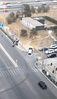 第四,第二輛車在飛起來的過程中,竟然“穿越”了立在路邊的鐵桿子,沒有撞上去。