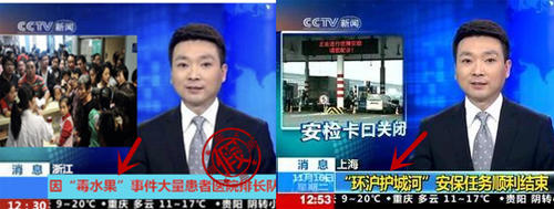 對比真正的CCTV新聞報道節目畫面,就能看出網帖圖片的標題部分粗制濫造,系制圖工具偽造而成。