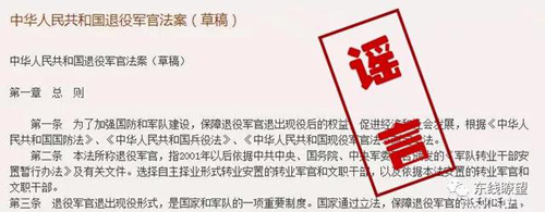 謠言一:《中華人民共和國退役軍官法案(草稿)》公布