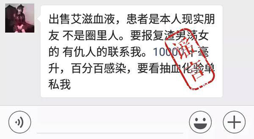 “滴血傳艾”的謠言剛結束,2018年10月,“艾滋病人公然售賣艾滋血”的消息在網上甚囂塵上,真是一波未平、一波又起。這是截圖,你們感受下。