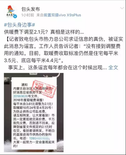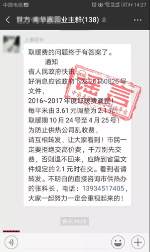 事實上,這條謠言屬于舊謠新傳,每年都會在這個時候出現(xiàn)。各地都有自己的版本。又到繳費時,在此提醒大家。這種供熱謠言不要再信了!調(diào)價信息要以官方通知為準。