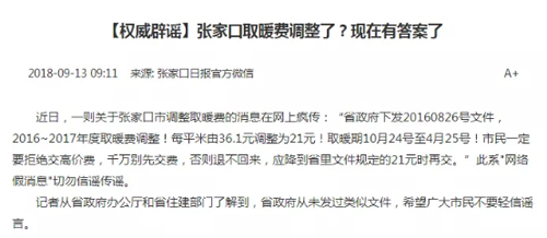 網(wǎng)傳今冬取暖費下調(diào)了?多地辟謠