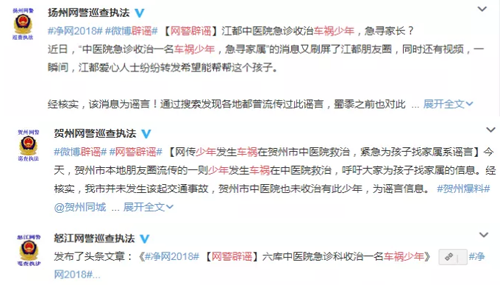 無(wú)錫、揚(yáng)州、黃石、麗水、大慶、怒江、賀州等全國(guó)各地網(wǎng)警紛紛辟謠。
