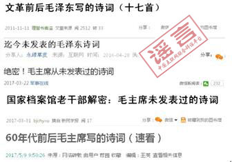 記者:前段時間,網上出現一個以所謂“毛澤東未發表文革詩詞”“國家檔案館老干部解密:毛主席未發表過的詩詞”等為題的文章。請問這些文章中所提到的“文革詩詞”是真的嗎?