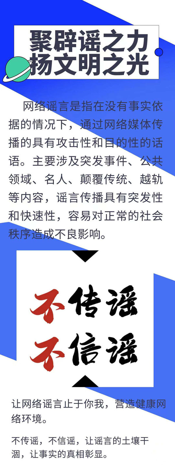 轉(zhuǎn)發(fā)權(quán)威辟謠,抵制網(wǎng)絡(luò)謠言。