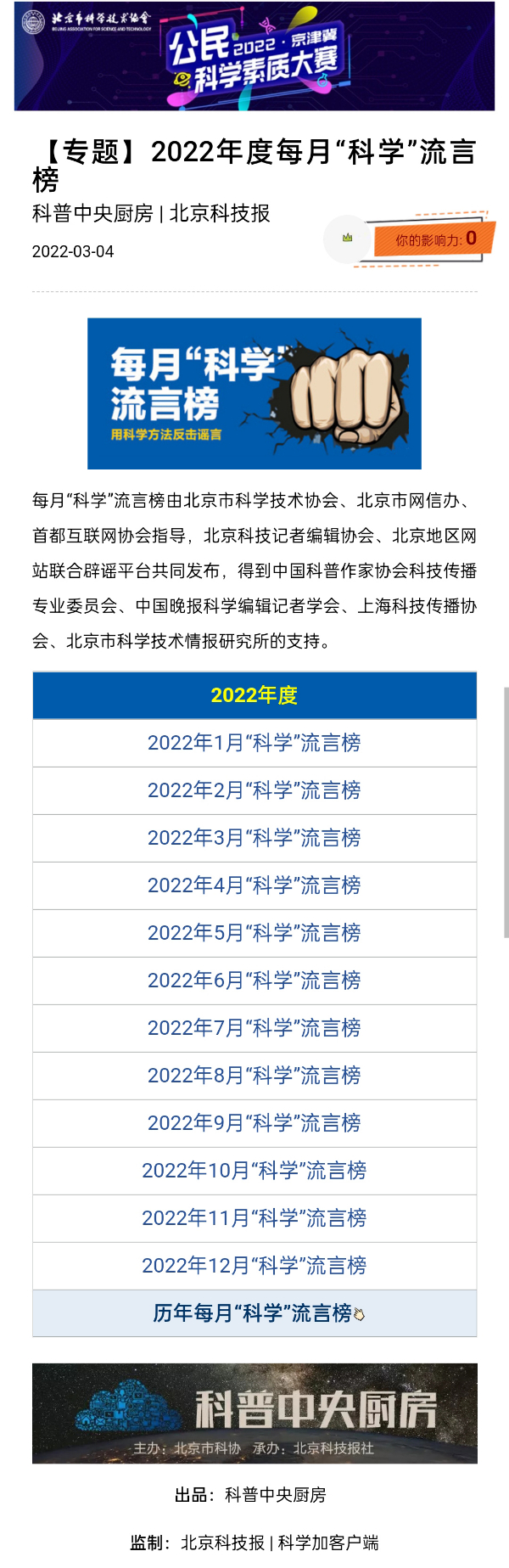 作品简介:作品通过对迷惑性强的“科学”流言及时予以科学权威的解释,并联动主流媒体共同发布传播,全年传播覆盖人次破亿,提升了网民识谣辨谣的能力。