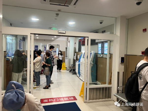 随后,记者前往位于医学院路130号上的中山医院发热门诊。此时,挂号收费窗口约有6名左右市民排队。就诊、输液等待区域人流量不少,但也不算拥挤。那么医生护士的工作状况如何?在预检分诊附近,记者遇到了一名发热门诊医生。她告诉记者,最近前来就诊的人数是有一点上升,但都不大严重,“病毒都是一视同仁的,怎么就会让医护人员倒下一大片?”对于网上流传的说法,她很肯定地表示是子虚乌有,没有出现网传的医护人员变动,运行一切正常。