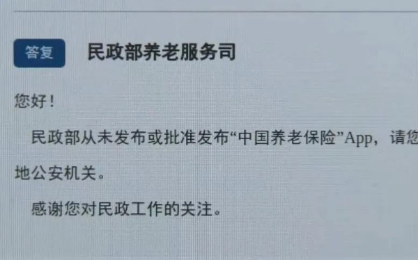 针对近期网络上流传的关于“中国养老保险”App的疑问,民政部养老服务司近日在官方渠道正式回应了网民关切。明确指出,民政部从未发布或授权任何机构发布名为“中国养老保险”的手机应用程序。