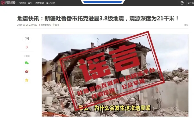 新疆托克逊县发生3.8级地震,警惕这些网络谣言!