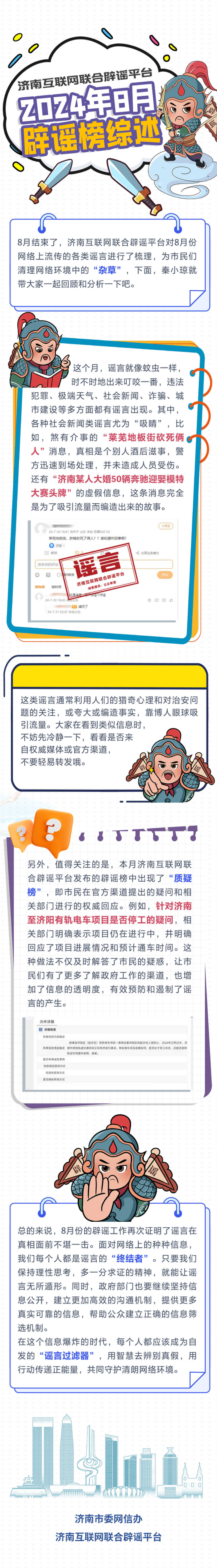 济南互联网联合辟谣平台2024年8月辟谣榜综述