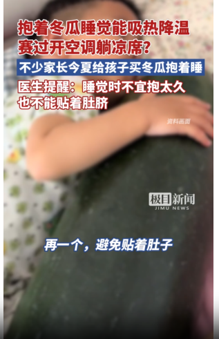 睡觉的时候不宜抱的太久,人体入睡以后,温度本身会下降。冬瓜应避免贴着肚子,如果贴着肚子,冬瓜太凉了,寒气就容易进入我们体内,容易损伤脾阳。