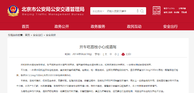 吃荔枝不能开车,会被查出血液酒精含量超标,导致酒驾违法?