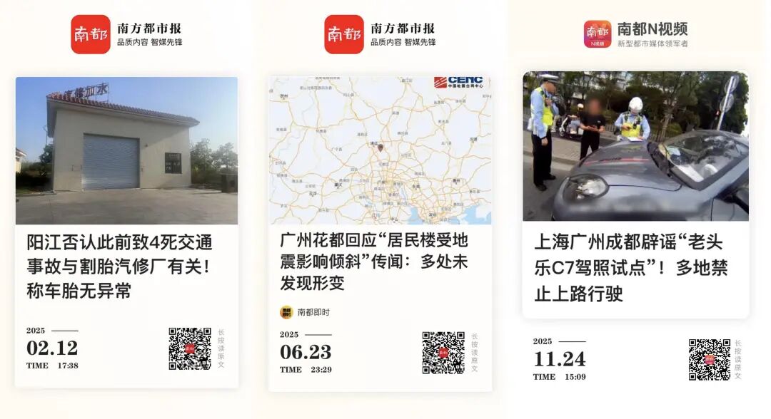 “事实还原”栏目联动公安、应急、气象等官方部门,快速发布权威辟谣信息。如“广东交警辟谣粤港澳两地牌全面取消”“广州花都回应‘居民楼受地震影响倾斜’传闻”“广州网民造谣某地发生爆炸被罚”,及时核查“茂名外卖员台风天遭树木砸死”等谣言,有效阻断网络谣言不良影响的扩散。